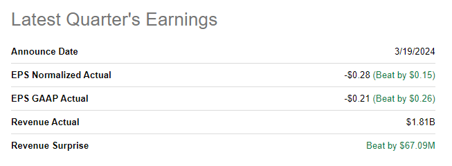 The Chinese EV maker delivered solid earnings for the fourth quarter this week that beat the consensus estimate by a considerable margin. XPeng generated $(0.28) per share in adjusted earnings on $1.81B in revenues, thereby beating the adjusted consensus prediction by $0.15 per share. The top line came in $67M better than expected.