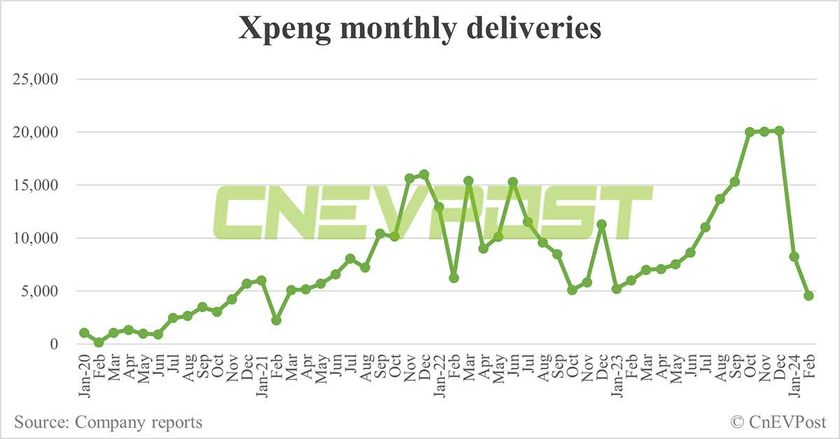 The Chinese New Year period, which falls into February, regularly leads to drop-offs in delivery volumes and they typically recover in the months after February. XPeng's guidance for the first quarter calls for a delivery volume of between 21,000 and 22,500 electric vehicles in the current first quarter, implying 19% year-over-year growth at the mid-point.