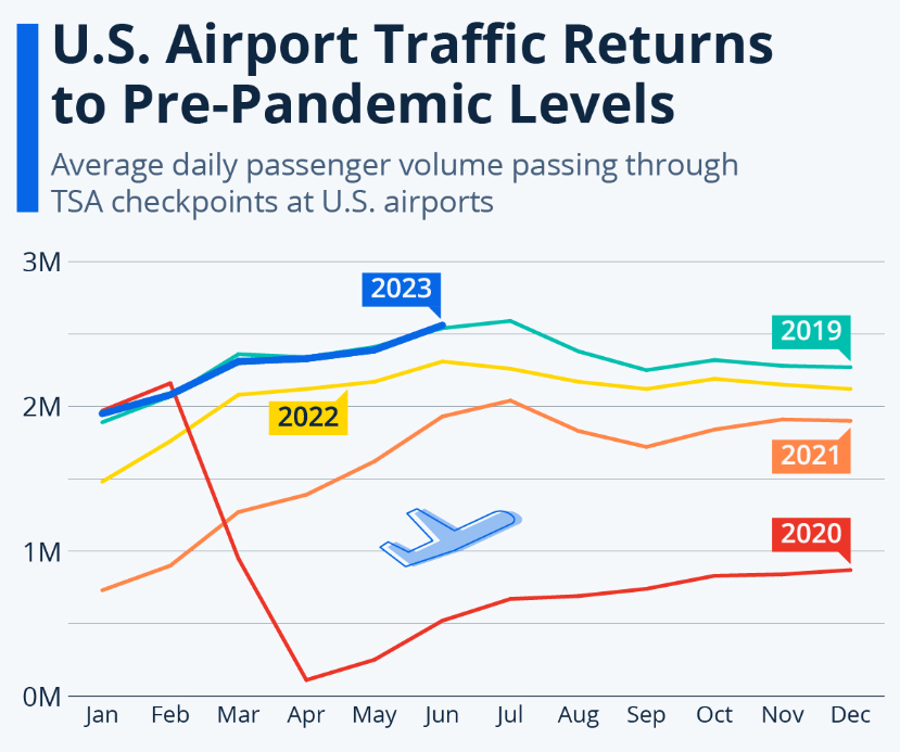 The transportation industry has done a great job of recovering from the disruption caused by the pandemic. We see that in 2023, airport traffic finally reached pre-pandemic levels. This is a great sign for the transportation industry in general, but it may also be a sign that growth will be harder to come by going forward.