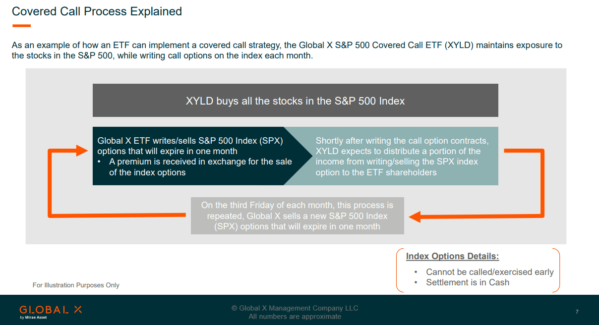 XYLD is an equity-focused ETF that writes covered calls against its portfolio of underlying assets. The risks are similar to those of a standard S&P index fund because if the market declines, so will XYLD, as it holds all of the companies in the S&P 500. While there is the traditional equity risk from market fluctuations and directional trends, XYLD has an added level of risk as the covered calls are limiting its upside potential. By writing covered call contracts on the S&P 500 index, XYLD is exchanging most of the upside potential in an appreciating market for immediate income, which is distributed to shareholders through monthly distributions. This can create a significant opportunity cost, and that's why I indicated that investors who are looking to maximize capital appreciation should probably look for a better fit than investing in XYLD. By investing in XYLD, your accepting that the balance of your investment will not replicate an S&P 500 index fund as you are trading that appreciation for immediate monthly income.