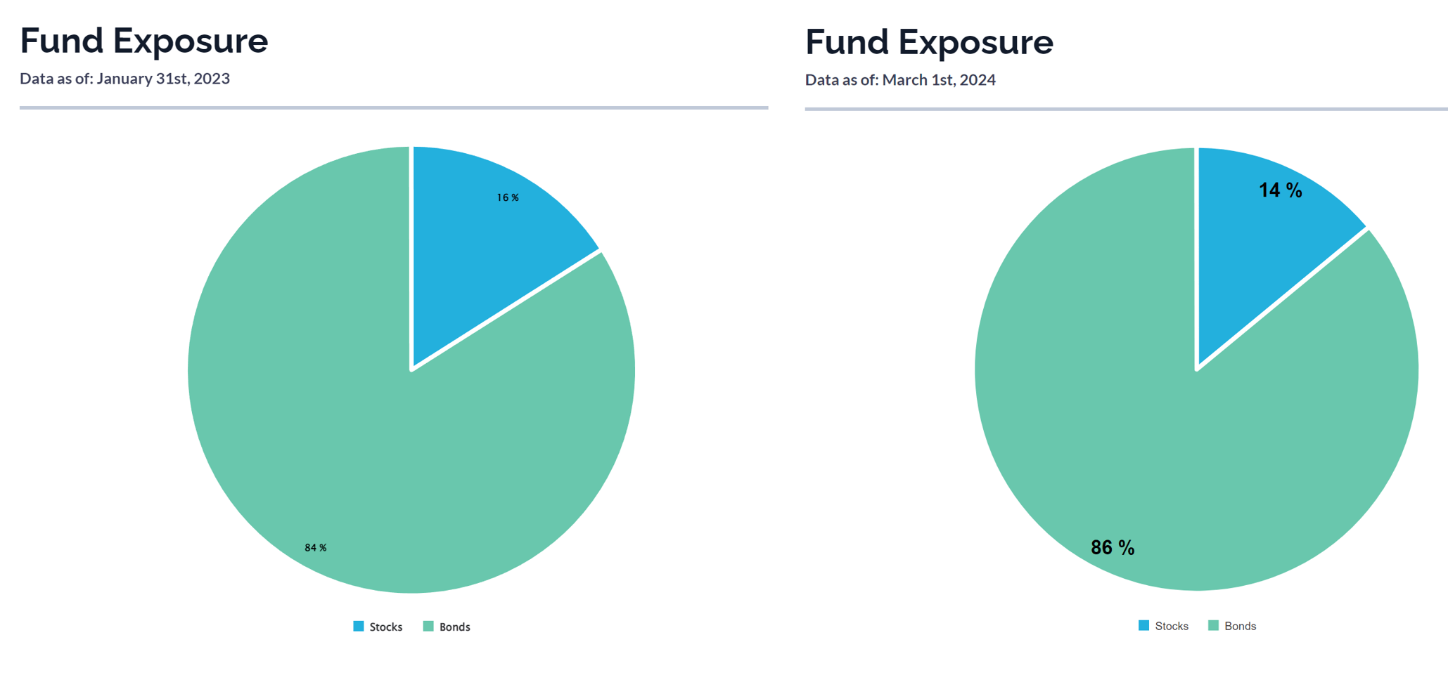 Figure 3 - Fund asset class weights, December 31st, 2023 vs. January 31st, 2023 (amplifyetfs.com)