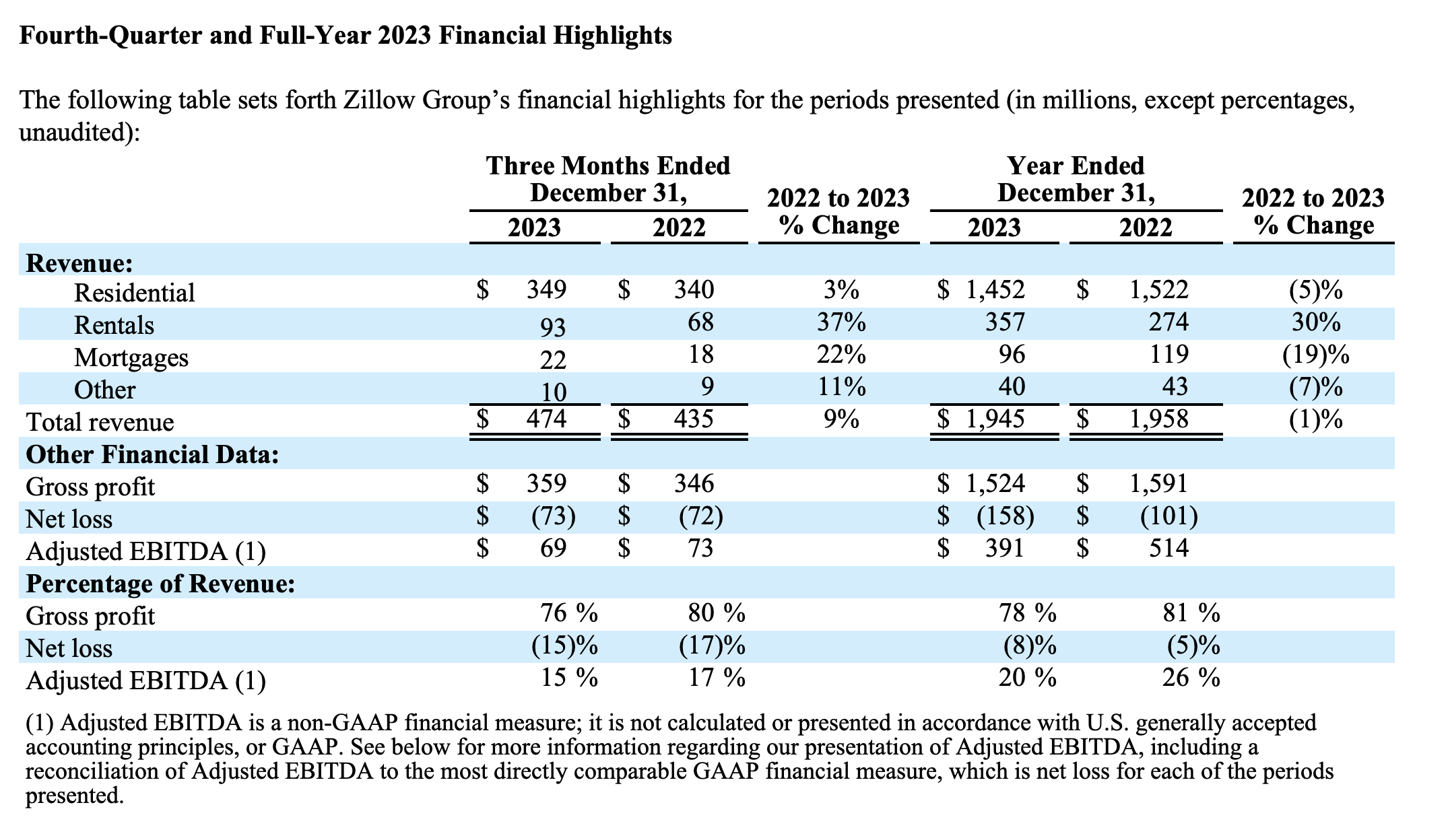 Zillow Q4 highlights (Zillow Q4 shareholder letter)