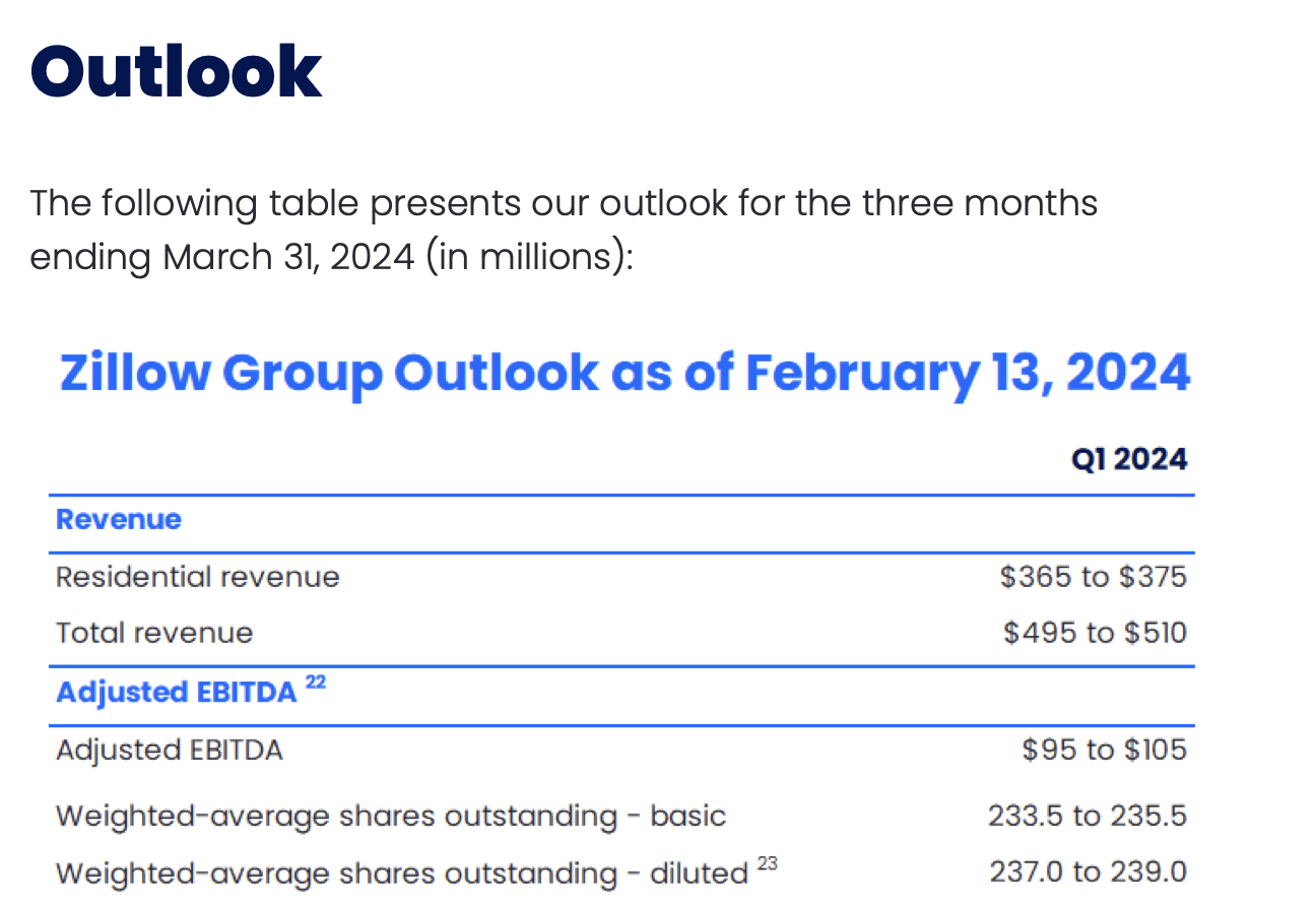 Zillow outlook (Zillow Q4 shareholder letter)